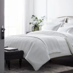 You can never go wrong with a classic. Patterned with subtle tonal stripes, our luxe cotton sateen flat sheet is one of our all-time favorites, thanks to its buttery soft hand, luminous sheen, and go-anywhere good looks. Plus, it’s wrinkle-free, so it’ll look flawless the minute it comes out of the dryer.