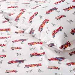 No need for alarm—our fire trucks are well guarded by a pack of loyal dalmatians. The perfect bedding for your future little firefighter, this eco-friendly comforter set is sewn of premium organic cotton percale.