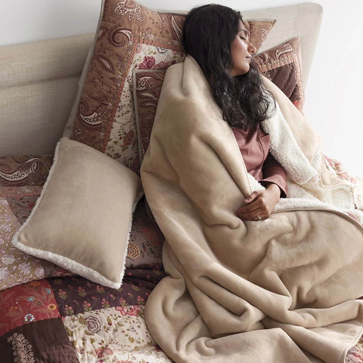 Meet the most meltingly soft, ultra-cozy throw blanket. With sumptuous sherpa on one side and plush fleece on the other, this luxurious layer is the perfect wrap for chilly days and nights. (And it’s great for giving, too.)