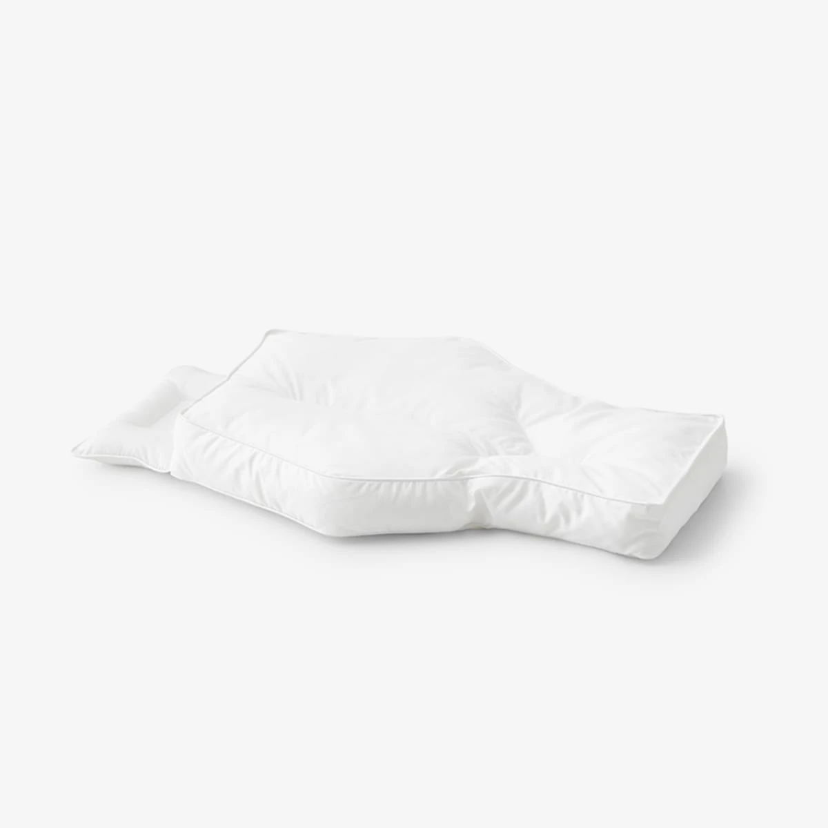 Designed for back sleepers, the Shoulder Posture Pillow naturally draws shoulders back to counter hunching back and slouching shoulders. It effectively expands the chest and increases oxygen flow while also helping to reduce pressure points on the back by adding extra cushioning. Another plus, this pillow does not clump or lose shape. Designed and assembled in the USA. Machine washable.